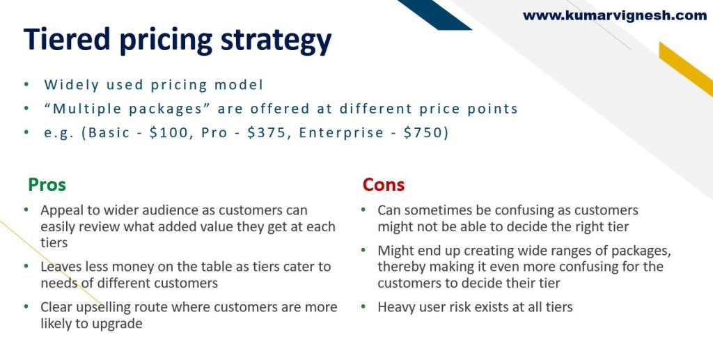 Business Tiered pricing strategy Date: December 6, 2021Author: Vignesh Kumar 0 Comments Day 3 on “SaaS Pricing models” Today let’s discuss the Pros and Cons of the “Tiered pricing strategy” Share this: Click to share on X (Opens in new window) X Click to share on Facebook (Opens in new window) Facebook Like Loading... Related
