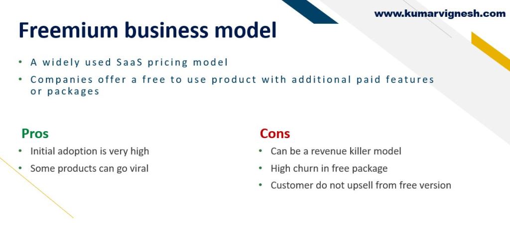 Business Freemium Pricing model Date: December 21, 2021Author: Vignesh Kumar 0 Comments Day 7 on “SaaS Pricing models” Today let’s discuss the Pros and Cons of the “Freemium business model” Share this: Click to share on X (Opens in new window) X Click to share on Facebook (Opens in new window) Facebook Like Loading... Related