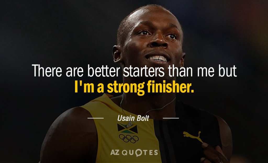 As the legendary sprinter #UsainBolt once said – “There are better starters than me, but I am a strong finisher”