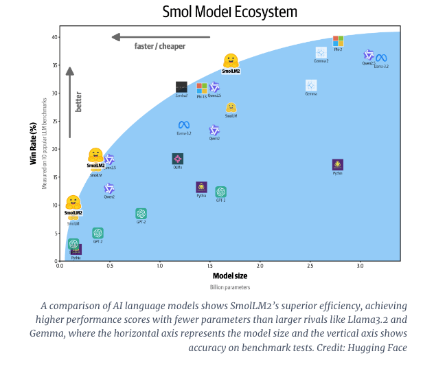 A few days ago, Hugging Face released SmolLM2, a new family of compact language models designed for high performance on limited computational resources. Available in 135M, 360M, and 1.7B parameters, these models can run efficiently on smartphones and edge devices, allowing AI to operate locally even with constrained processing power and memory. The 1.7B model outperforms Metaโs Llama 1B on several benchmarks, including science reasoning and commonsense tasks.